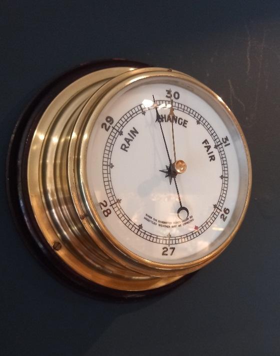 Antique Late Victorian Brass Bulkhead Marine Barometer
