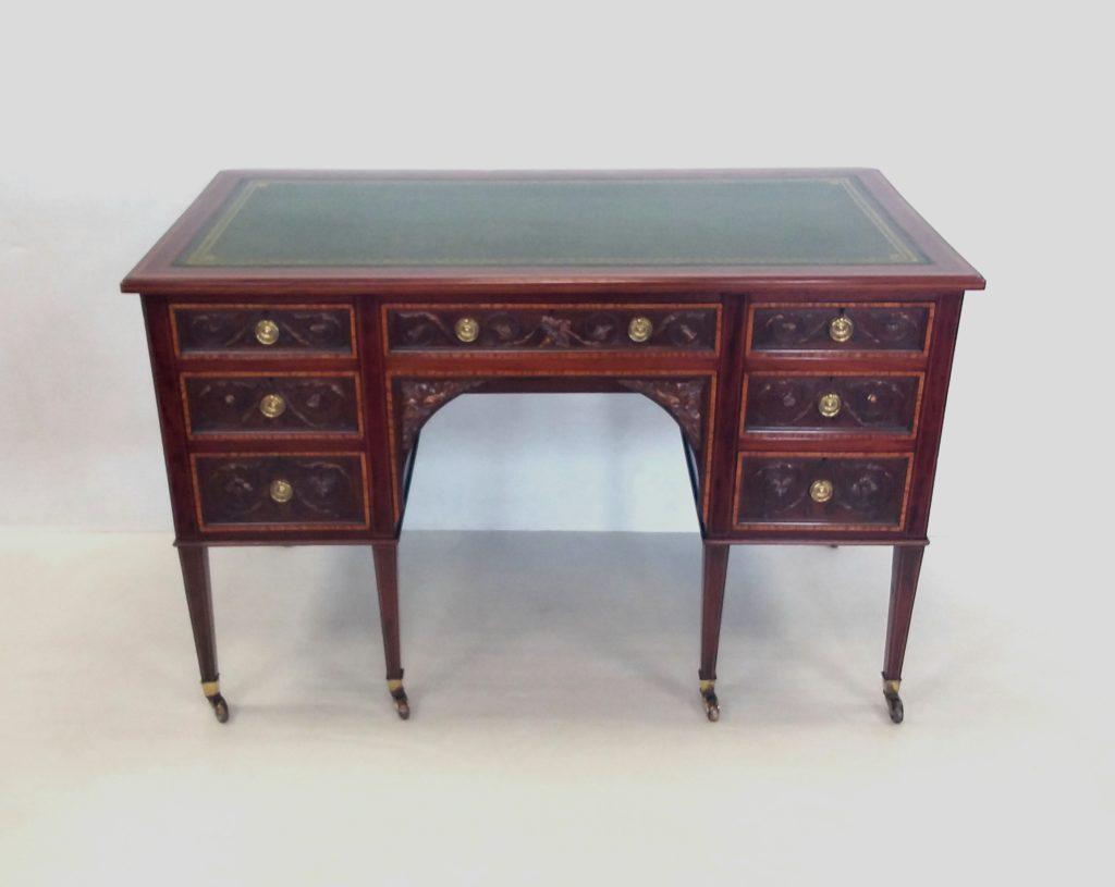 Antique Late Victorian Inlaid Leather Top Desk by Jas Shoolbred & Co