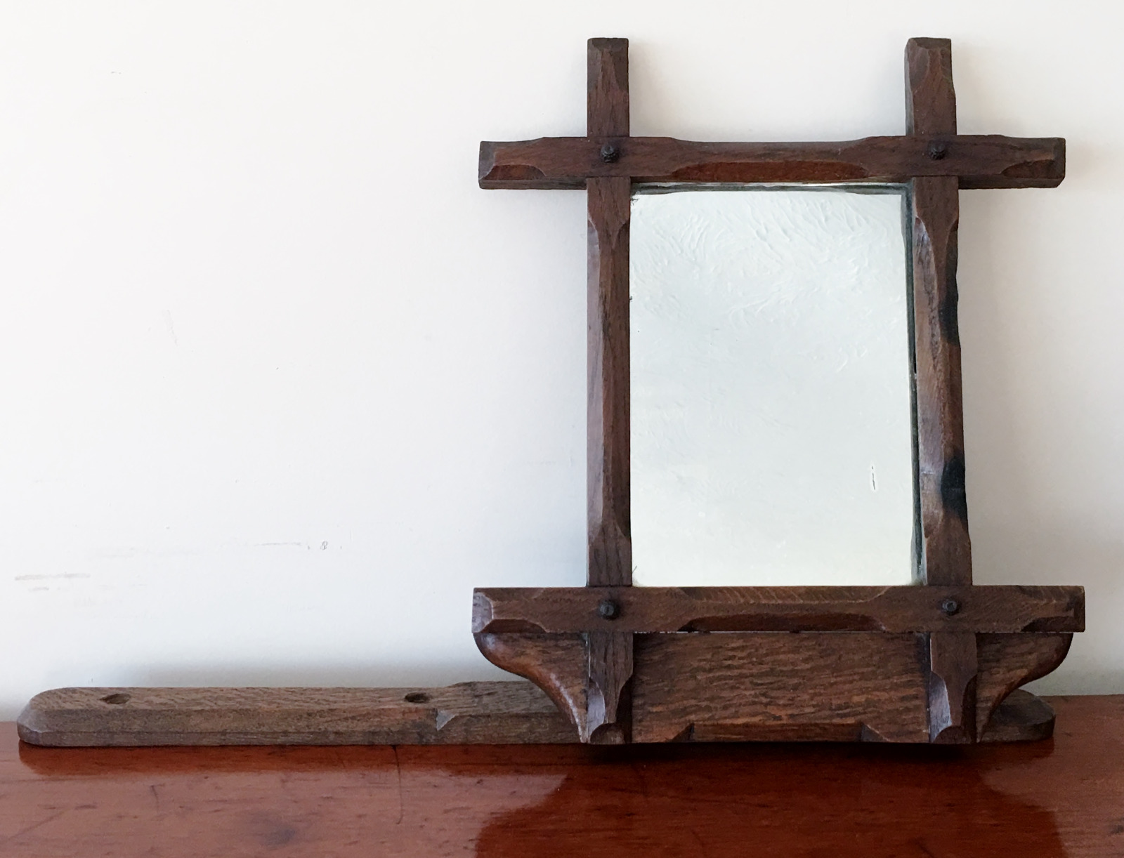 Antique Late Victorian Oak Folding Church Organ Console Mirror