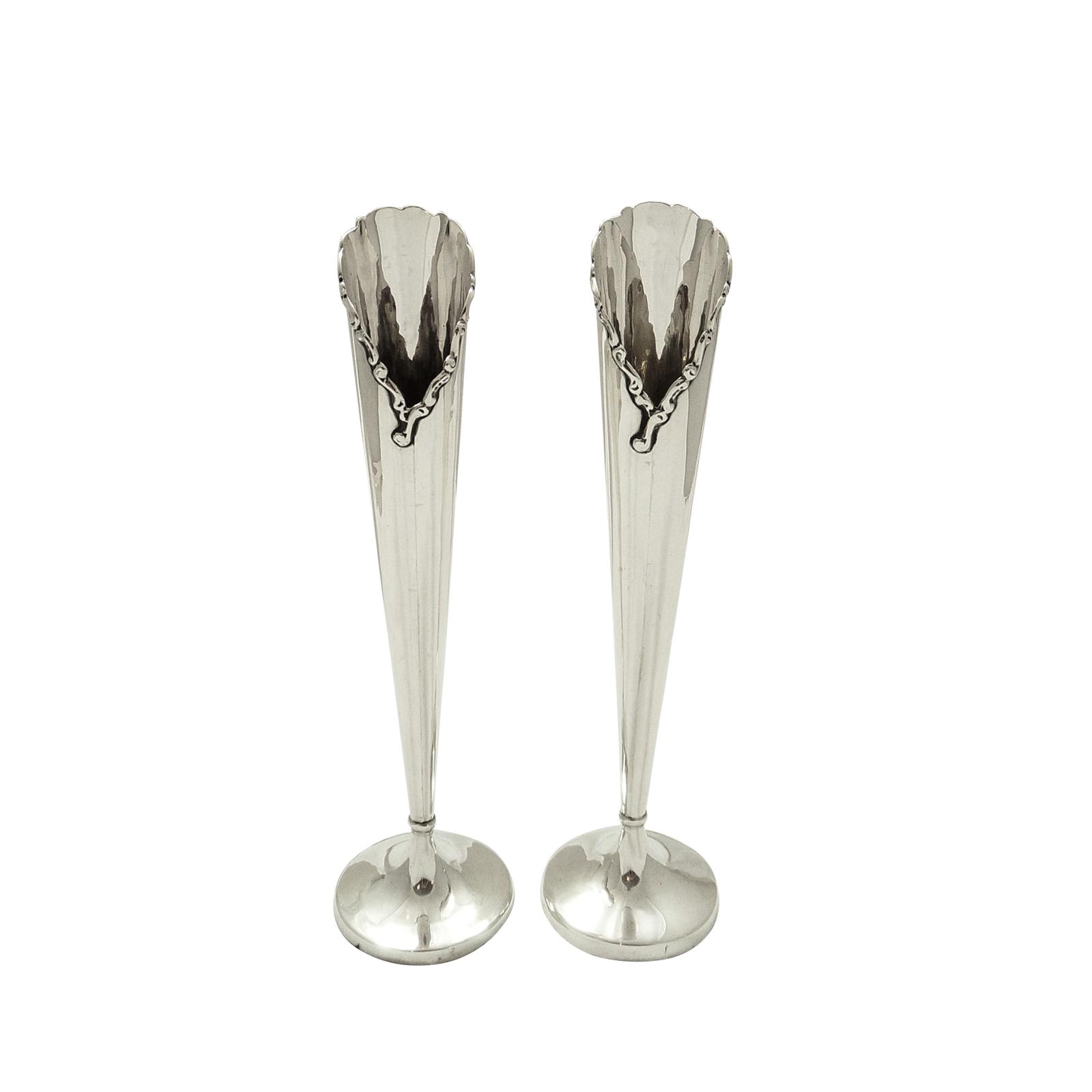Antique Late Victorian/Edwardian Sterling Silver 8" Vases 1901