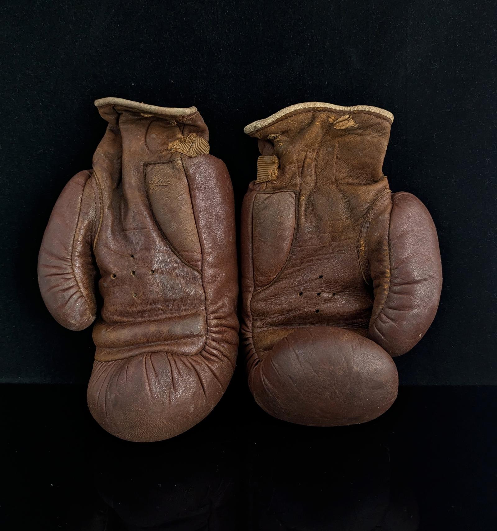 A fantastic pair of genuine antique leather boxing gloves.