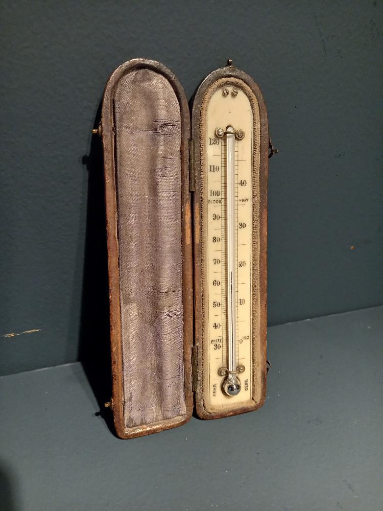 Antique Leather Cased Pocket Thermometer