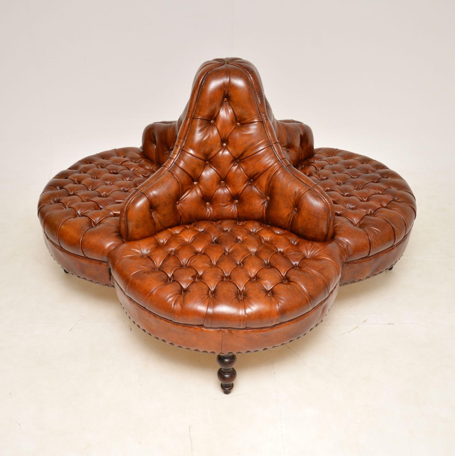 Antique Leather Deep Buttoned Conversation Sofa