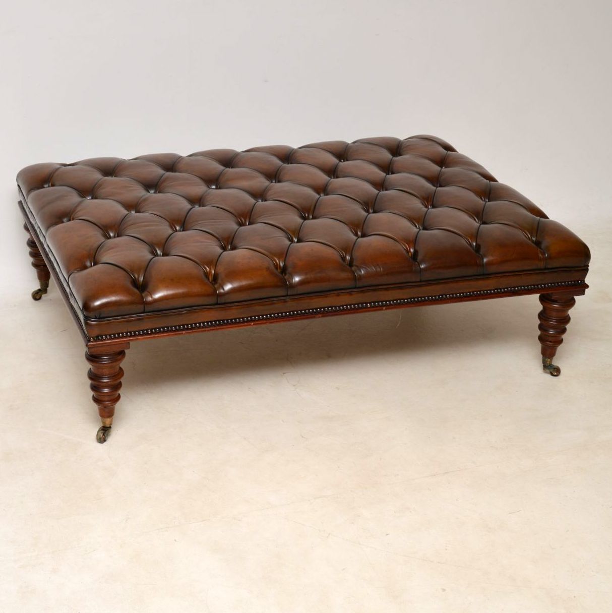 Antique Leather Deep Buttoned Stool / Coffee Table c.1890