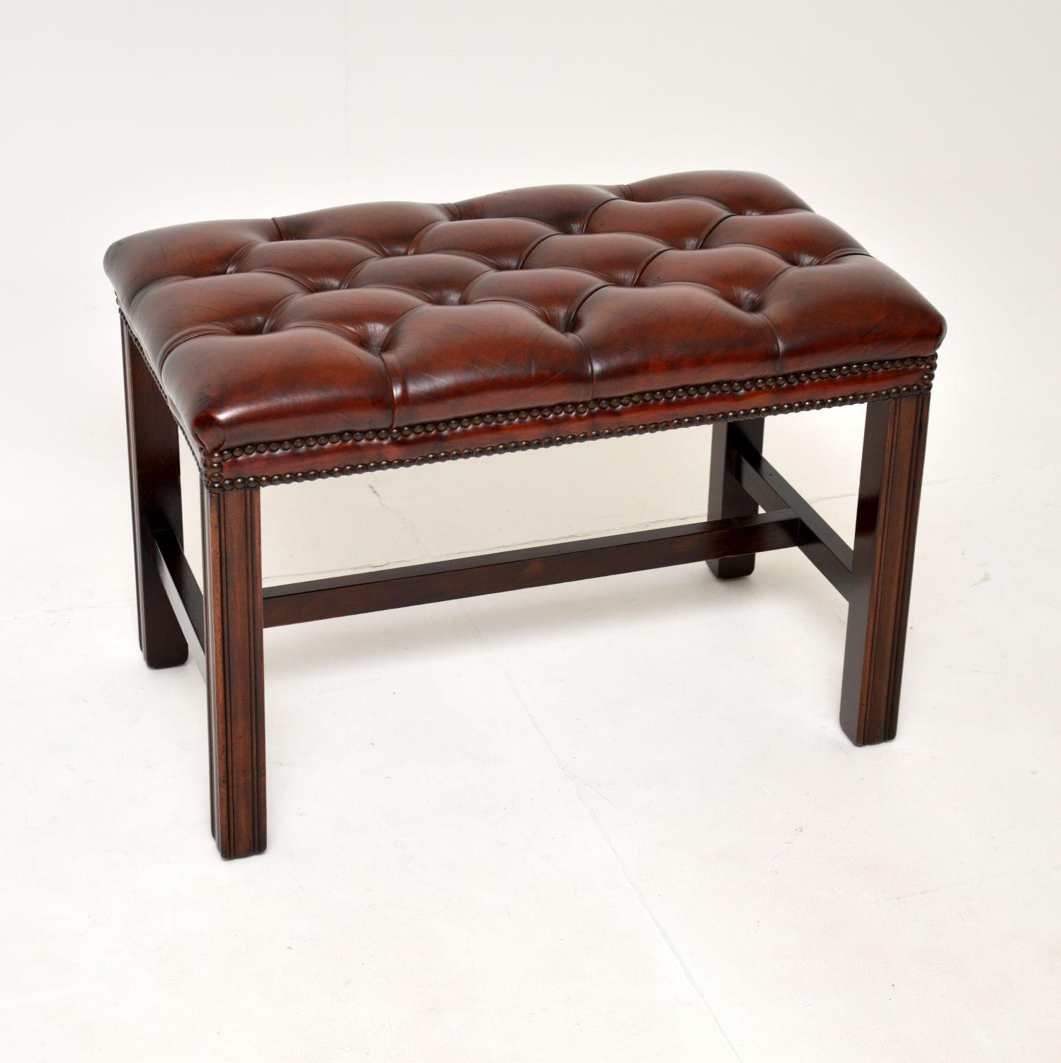 Antique Leather & Mahogany Foot Stool