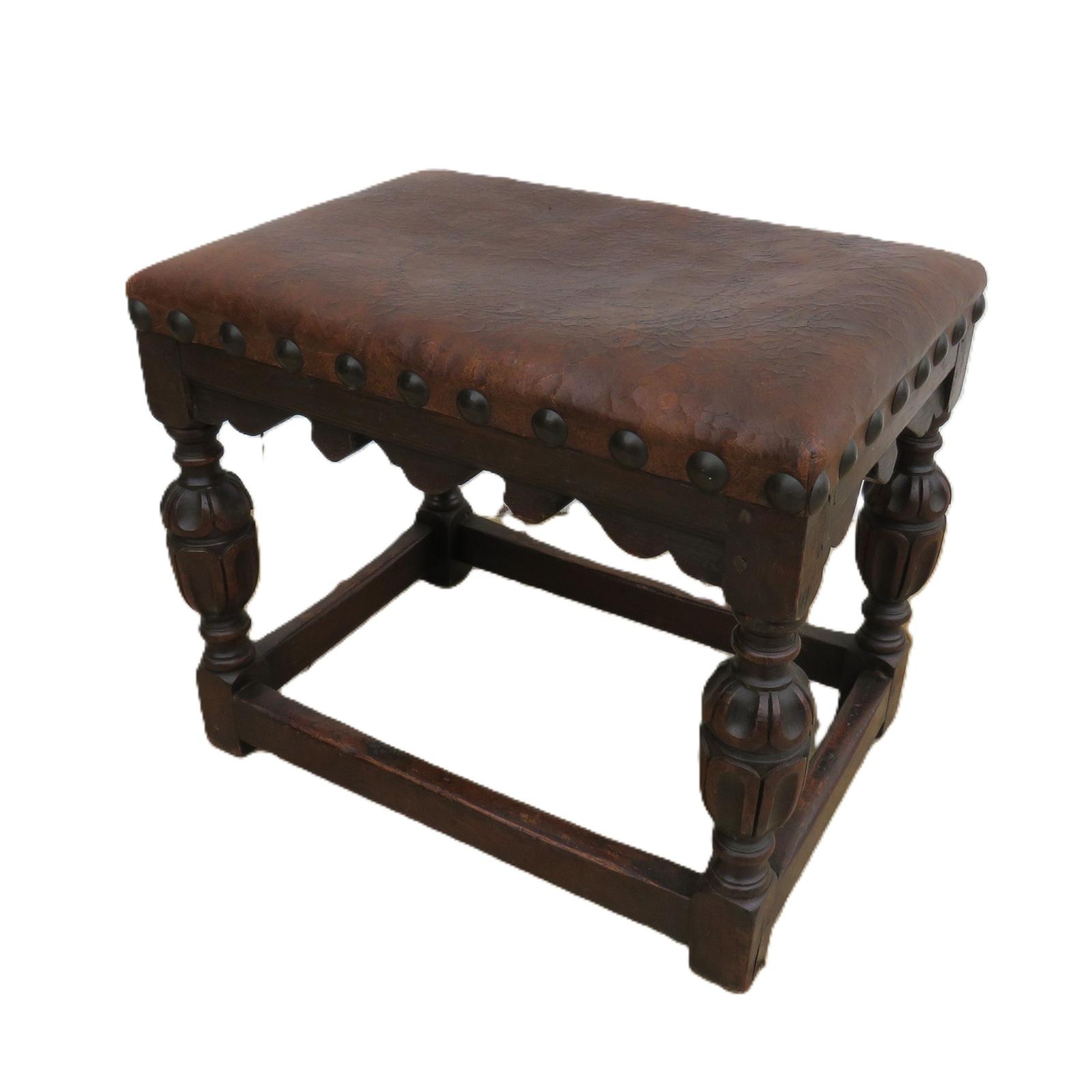 Antique Leather & Oak Foot Stool