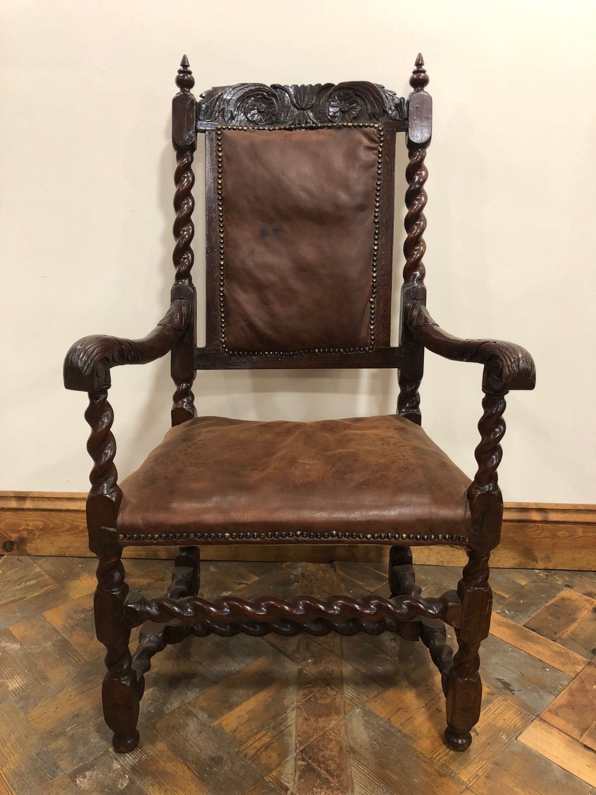 Antique Leather Seat & Back Throne Chair (1 of 1)