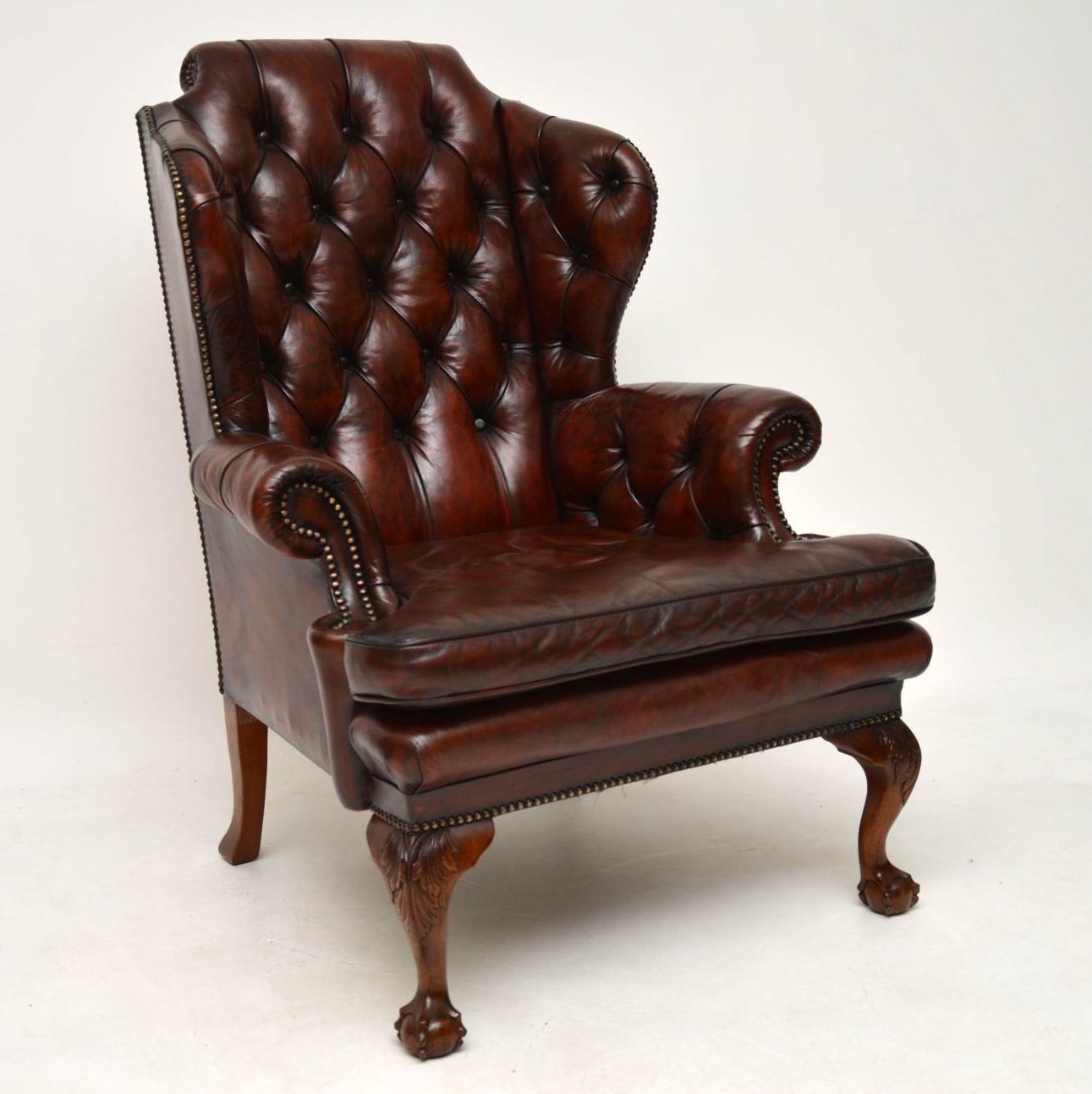 Antique Leather Wing Back Armchair c.1890 (1 of 1)