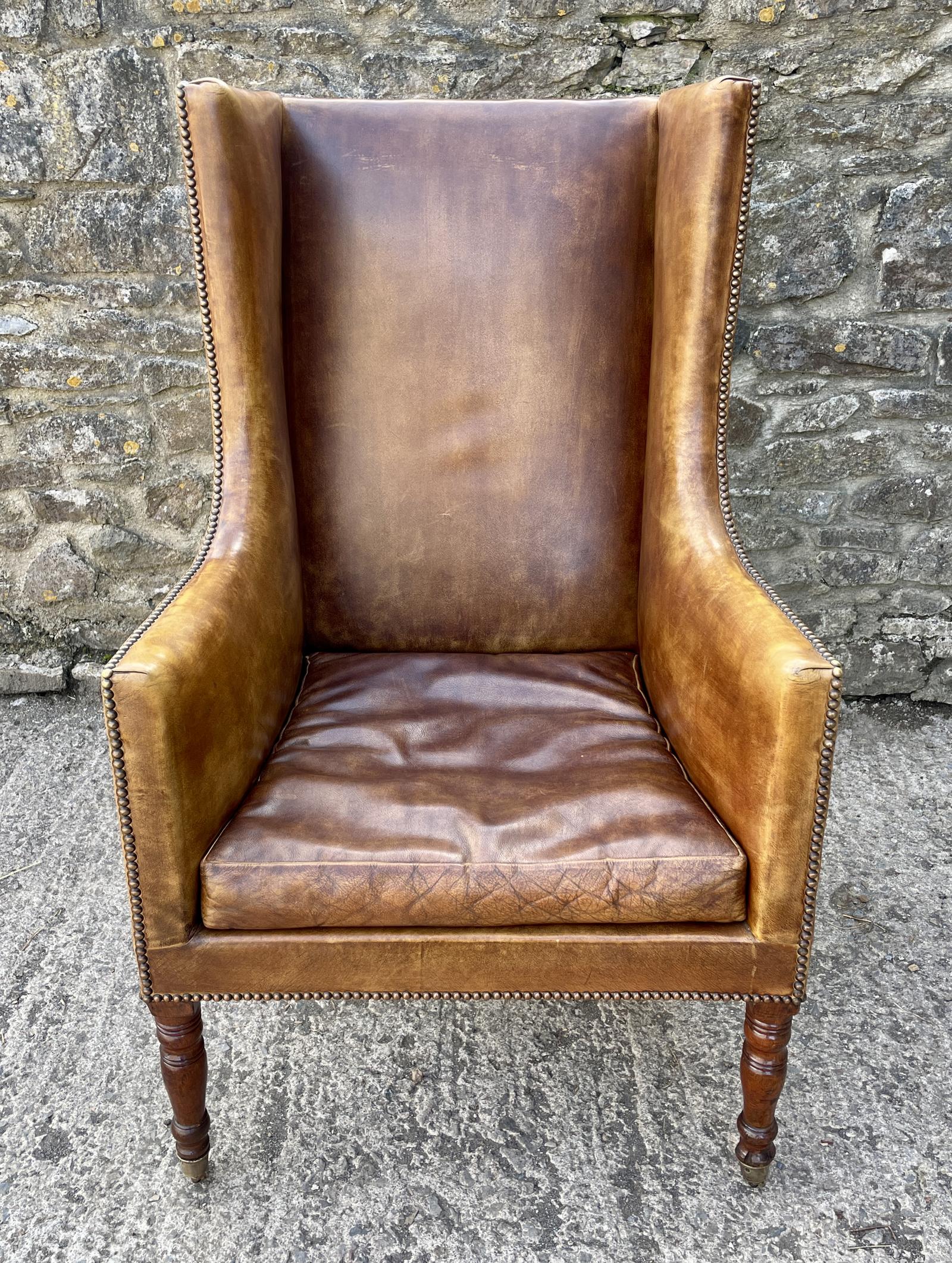 Antique Leather Wingback Armchair