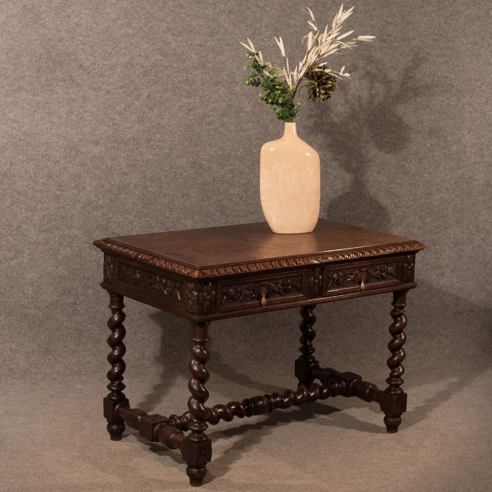 Antique Library Writing Side Hall Table Victorian English Carved Oak c.1870 (1 of 1)