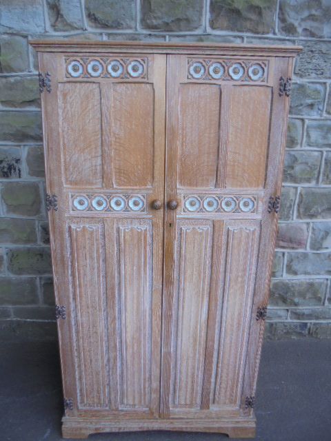 Antique Limed Oak 2 Door Wardrobe by Heals c.1910