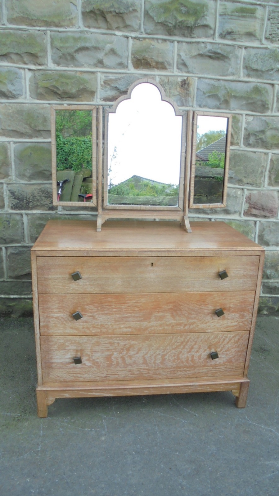 Antique Limed Oak Dressing Chest with Mirror in Manner of Heals