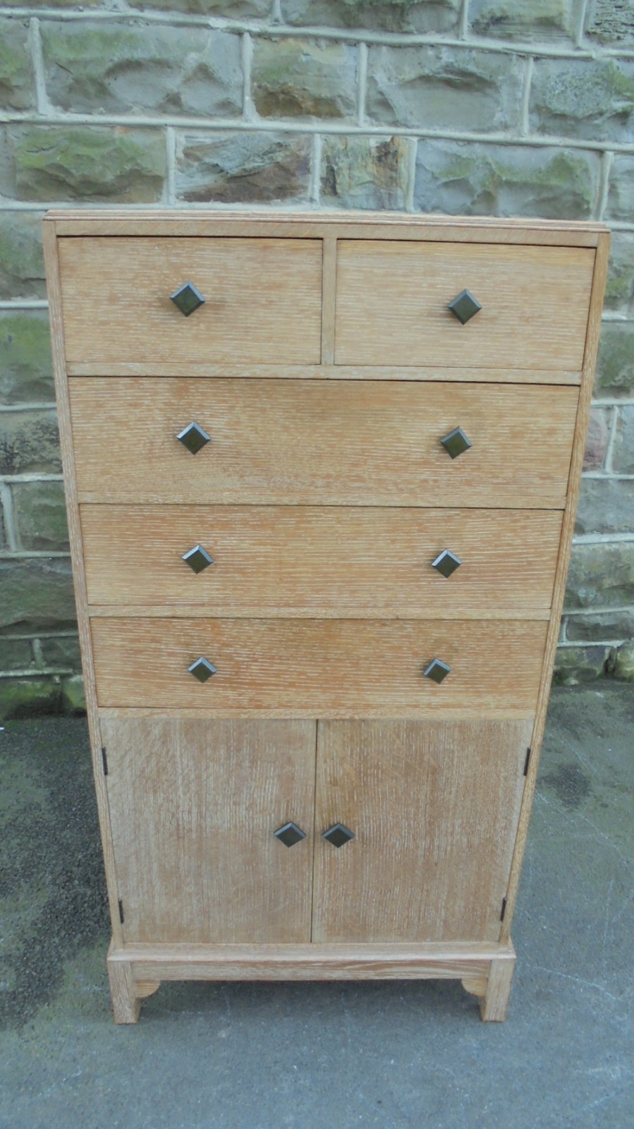 Antique Limed Oak Tallboy Chest in manner of Heals c.1910