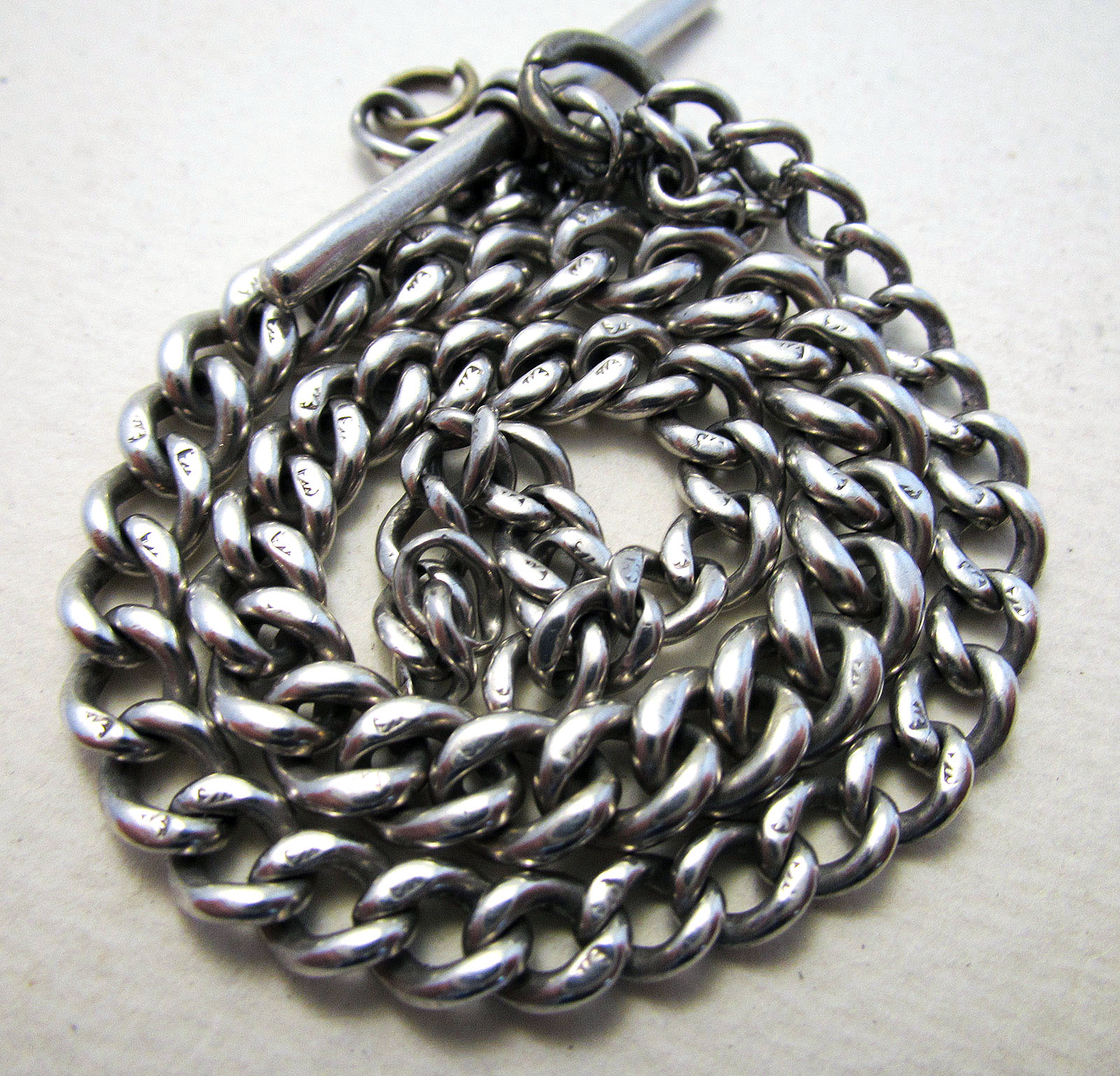 Antique Liverpool 13 1/4' Victorian Hallmarked Solid Sterling Silver English Albert Graduating Pocket Watch Fob T-Bar Chain. Joseph Sewill