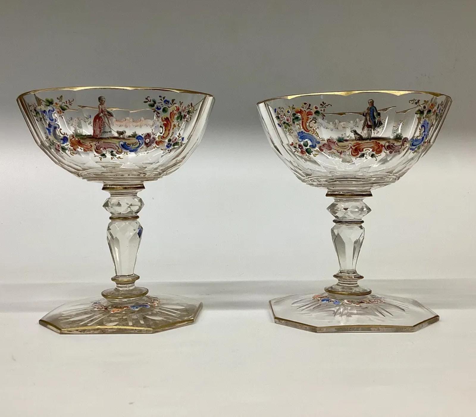 Antique Lobmeyr Enamelled Champagne Glasses Rococo Series