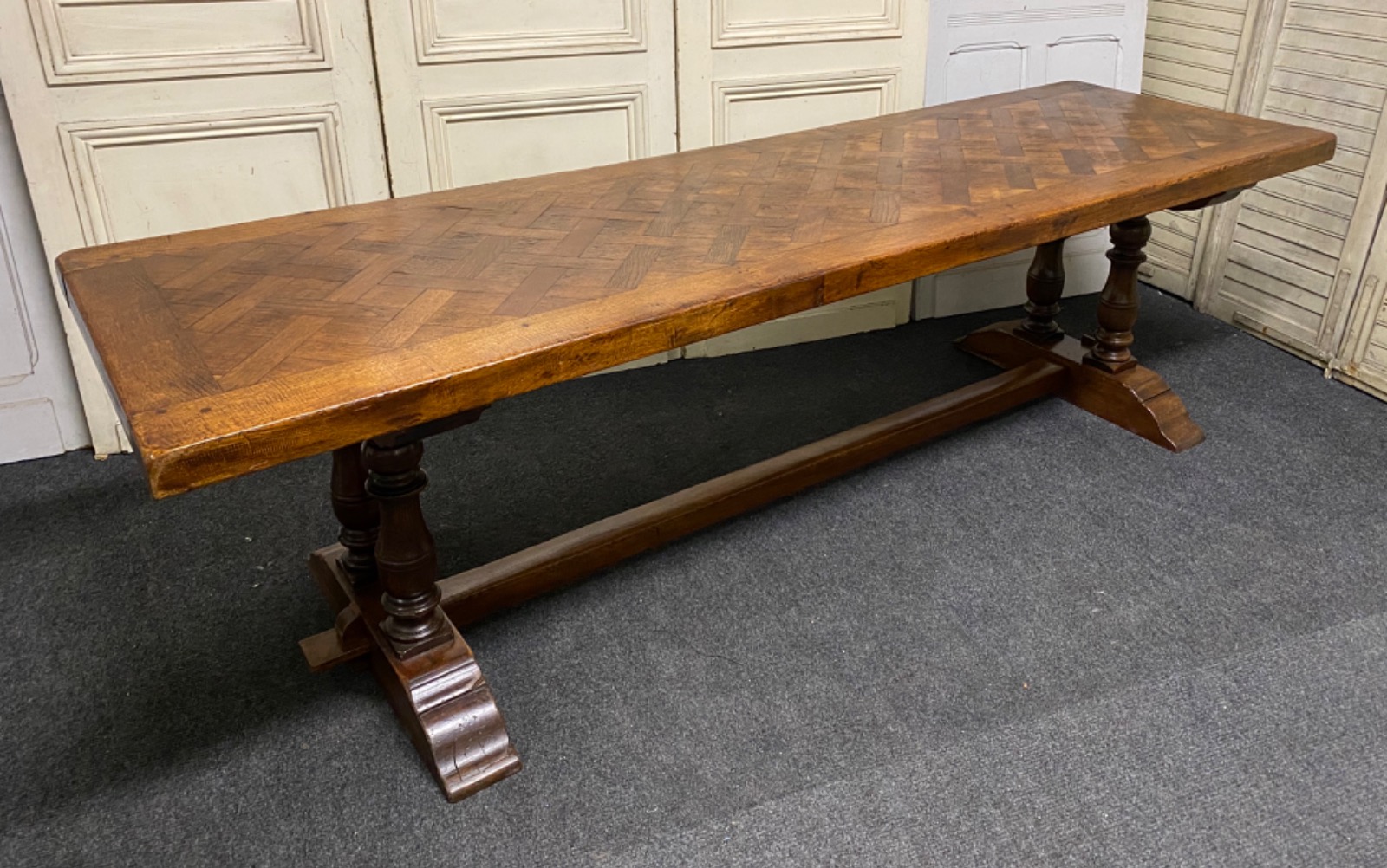 Antique Long French Parquetry Monastery Dining Table