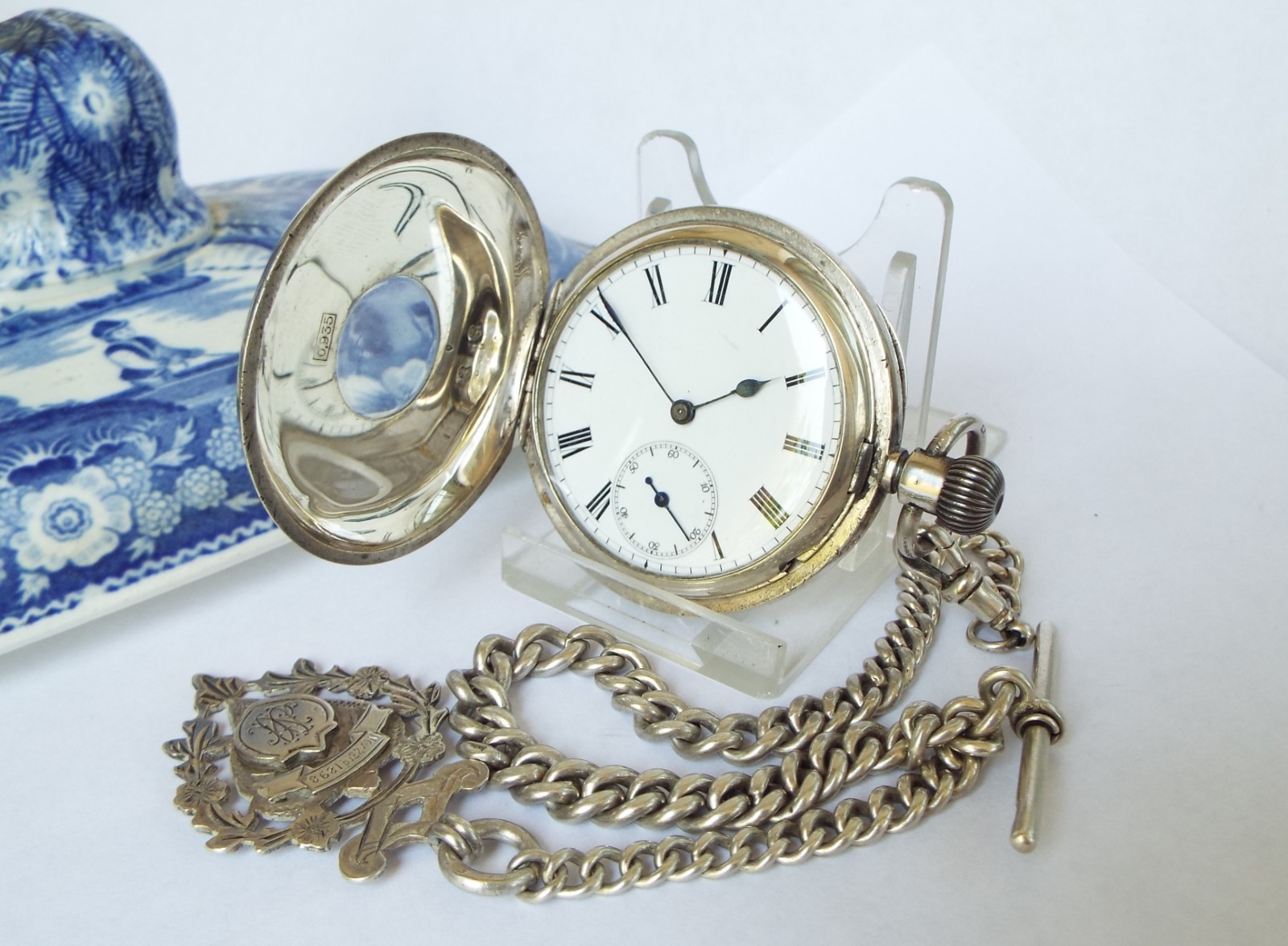 Antique Longines Silver Half Hunter Pocket Watch For Thomas Russell