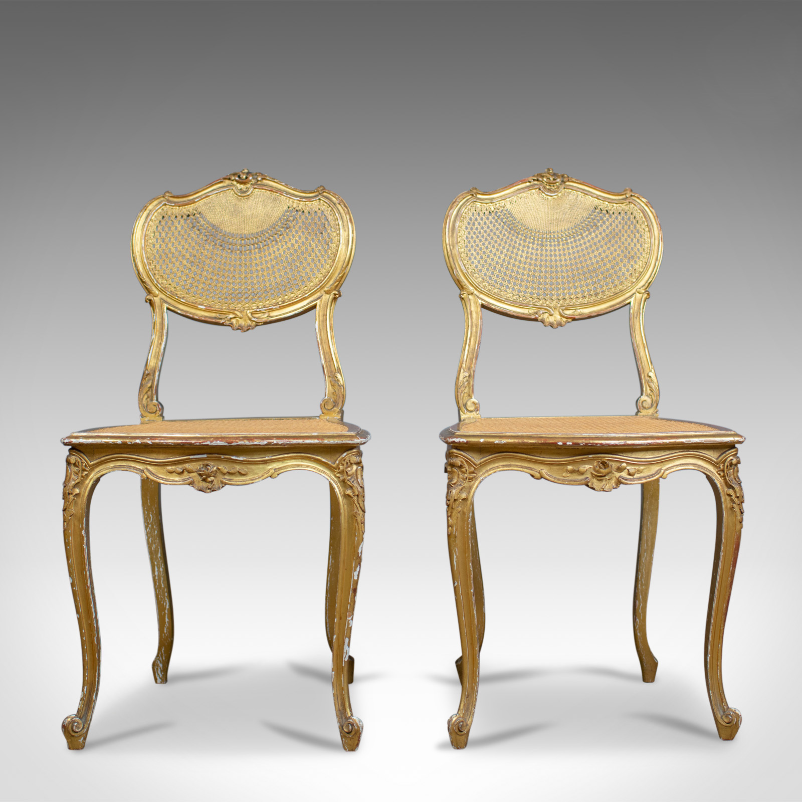 Antique Louis XV Revival Salon Chairs, French, Giltwood, Cane c.1900 (1 of 1)
