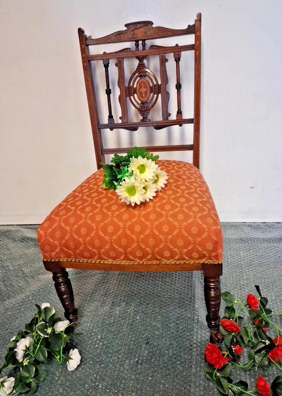 This Antique Low Seated Edwardian Bedroom Chair seat height 36cm is a charming piece of furniture, perfect for a child's bedroom or a versatile addition to any room. this unique chair exudes the elegance and charm of the Edwardian era. With its height of 74cm and a length and width of 42cm, it is a stylish and comfortable option for sitting or lounging in any bedroom setting.