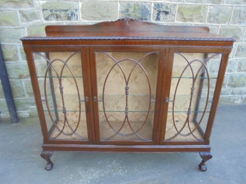 Antique Mahogany 3 Door Display Cabinet / Bookcase c.1910