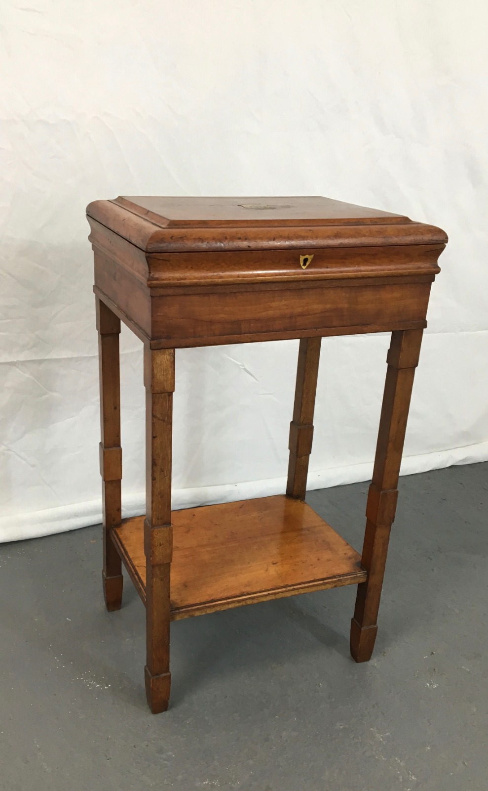 Antique Mahogany Box on Stand - Side Table with Brass Insert