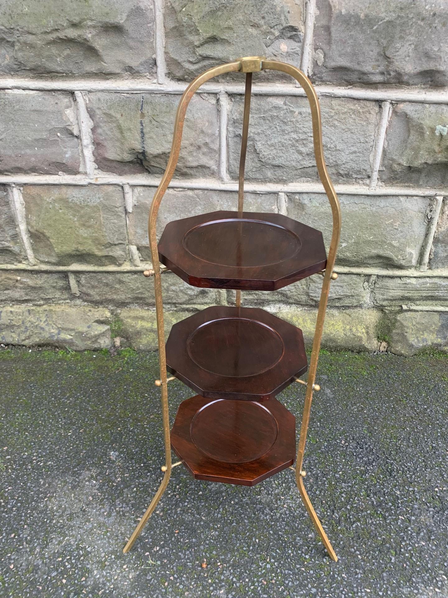 Antique Mahogany & Brass Cake Stand