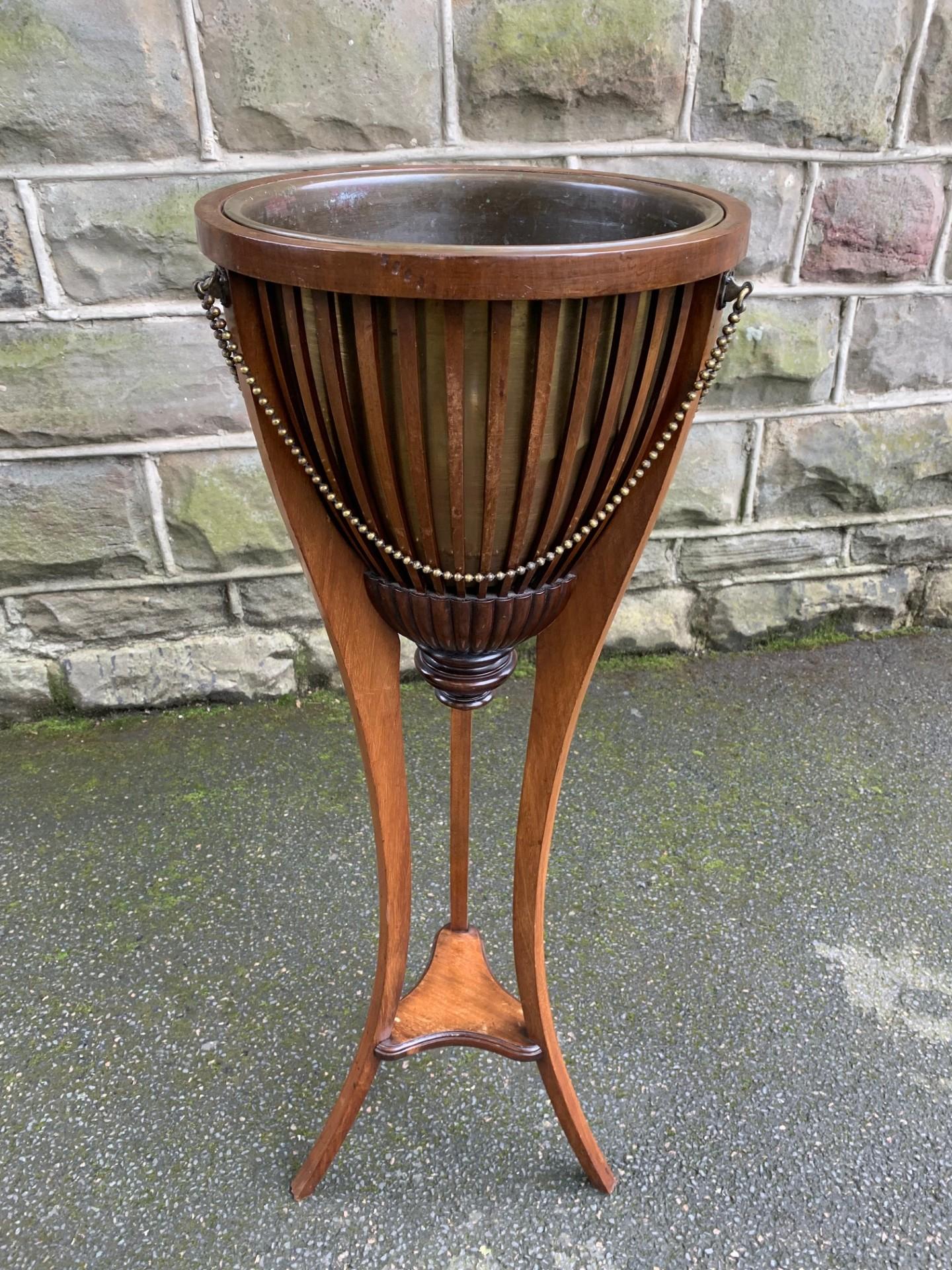 Antique Mahogany & Brass Plant Stand Jardiniere