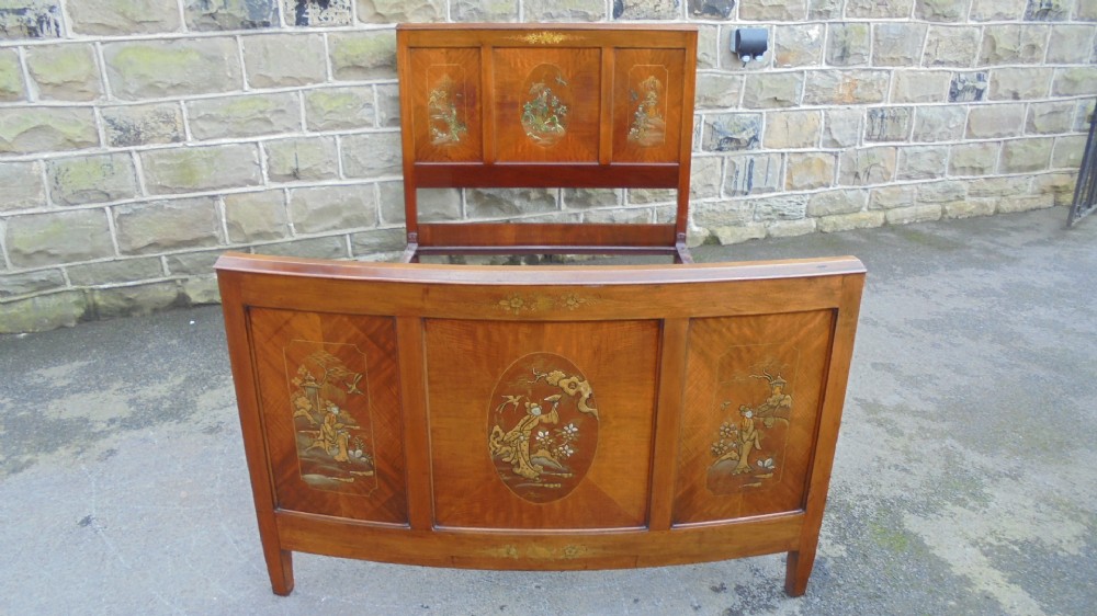 Antique Mahogany Chinoiserie Japanned Double Bed Frame