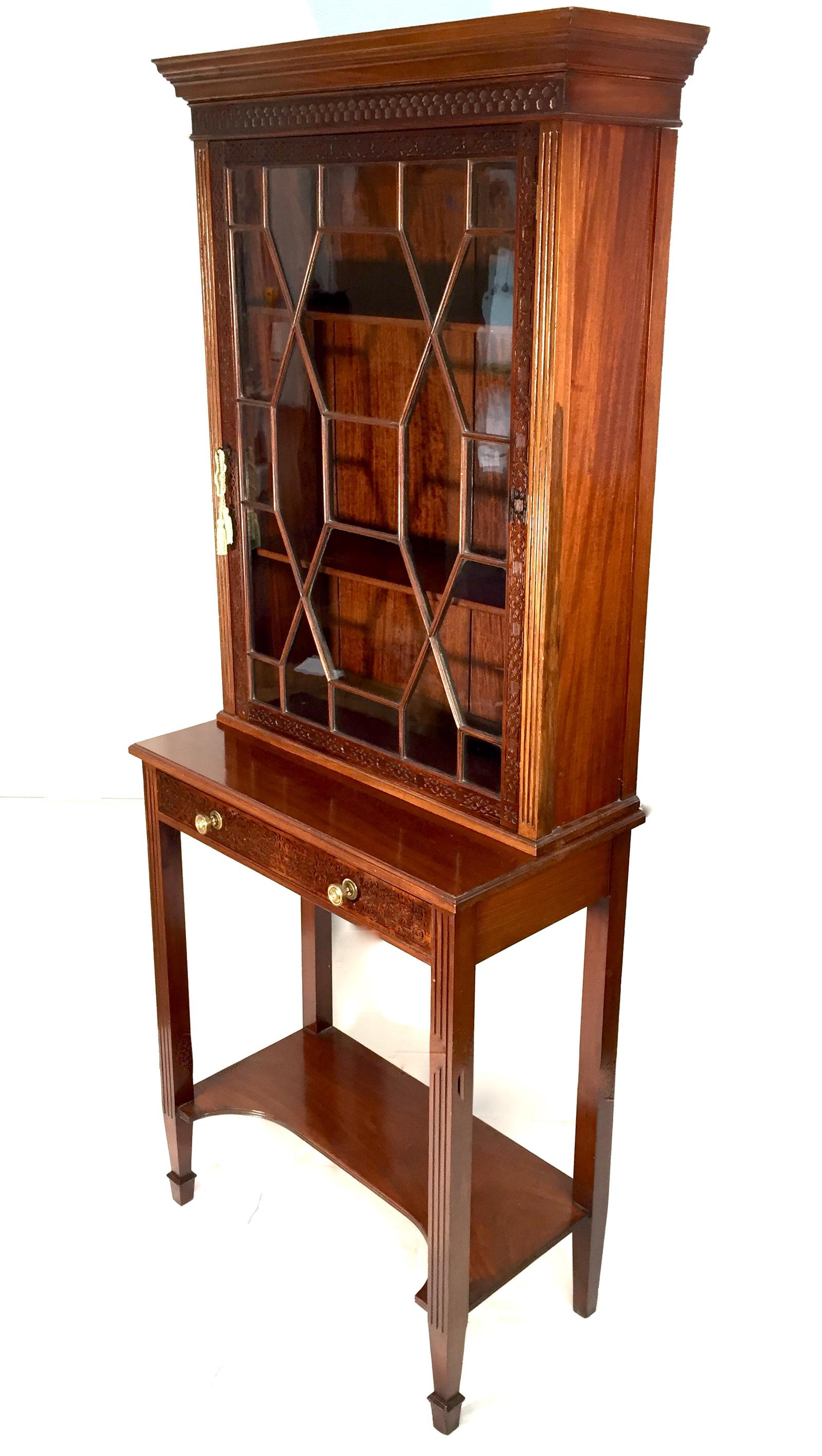 Antique Mahogany Chippendale Style Bookcase Display Cabinet