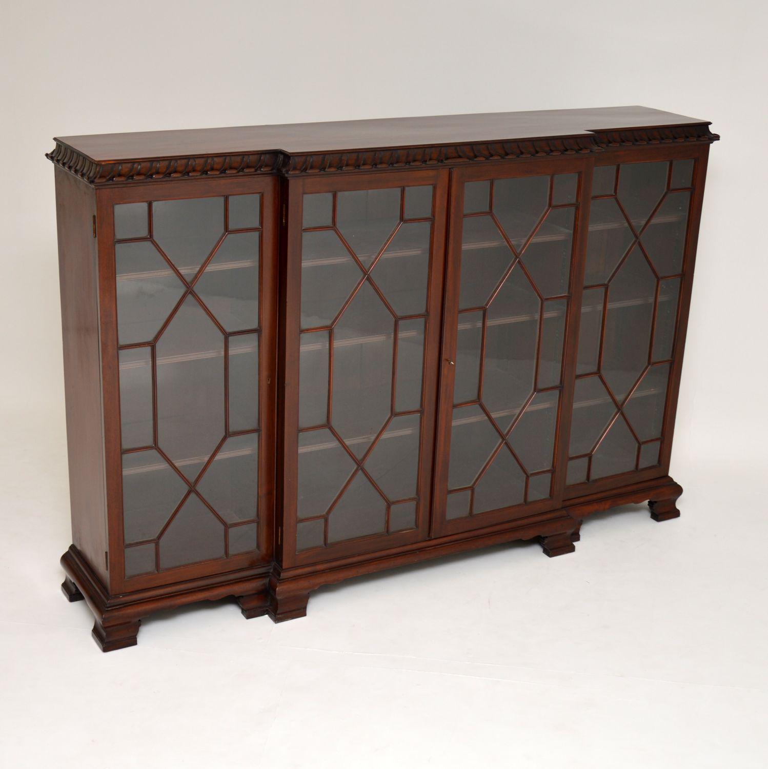 Antique Mahogany Chippendale Style Breakfront Bookcase