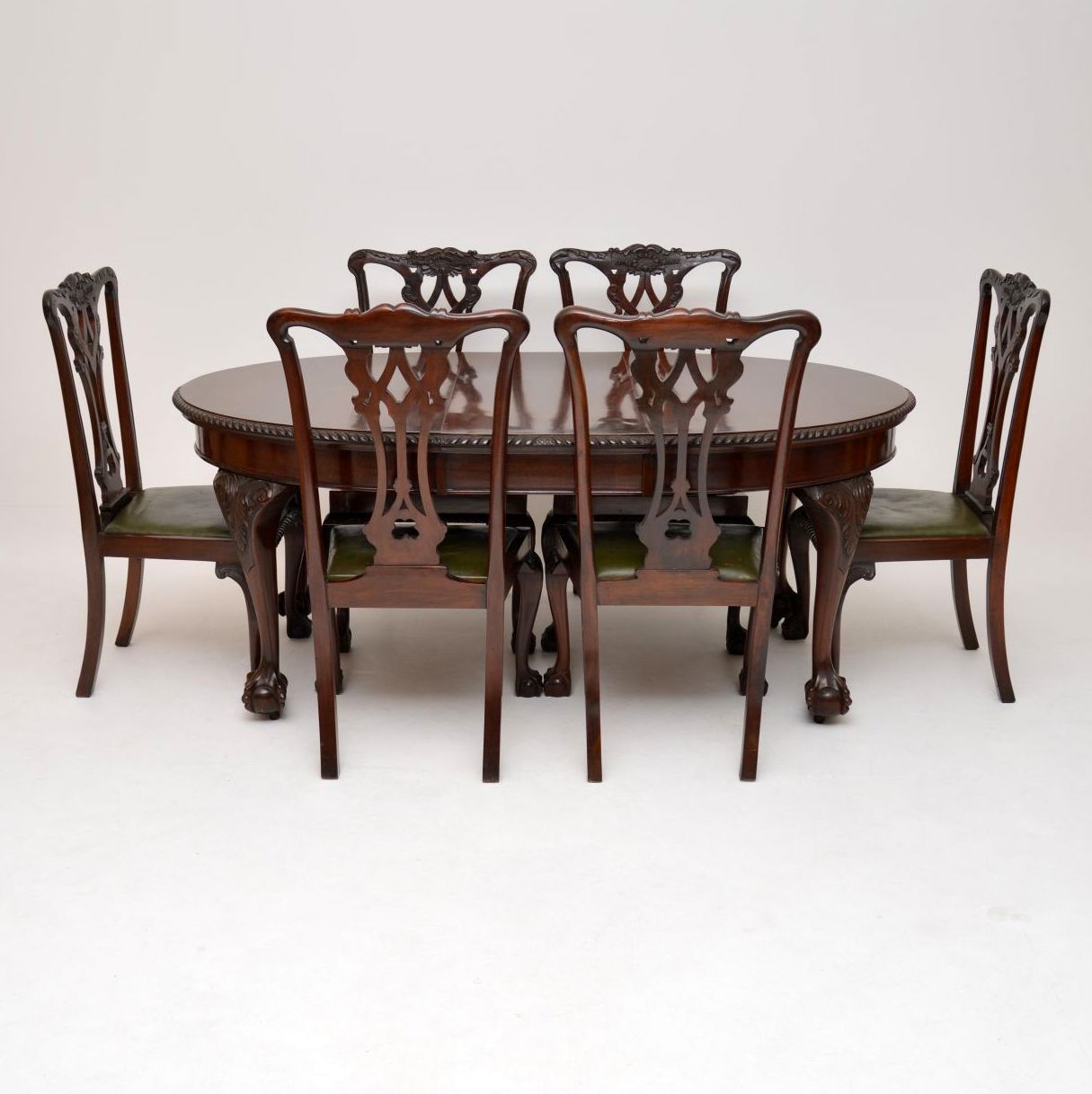 Antique Mahogany Chippendale Style Dining Table & Six Chairs