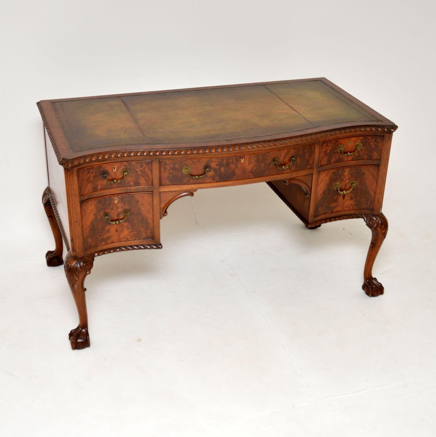 Antique Mahogany Chippendale Style Leather Top Desk (1 of 11)