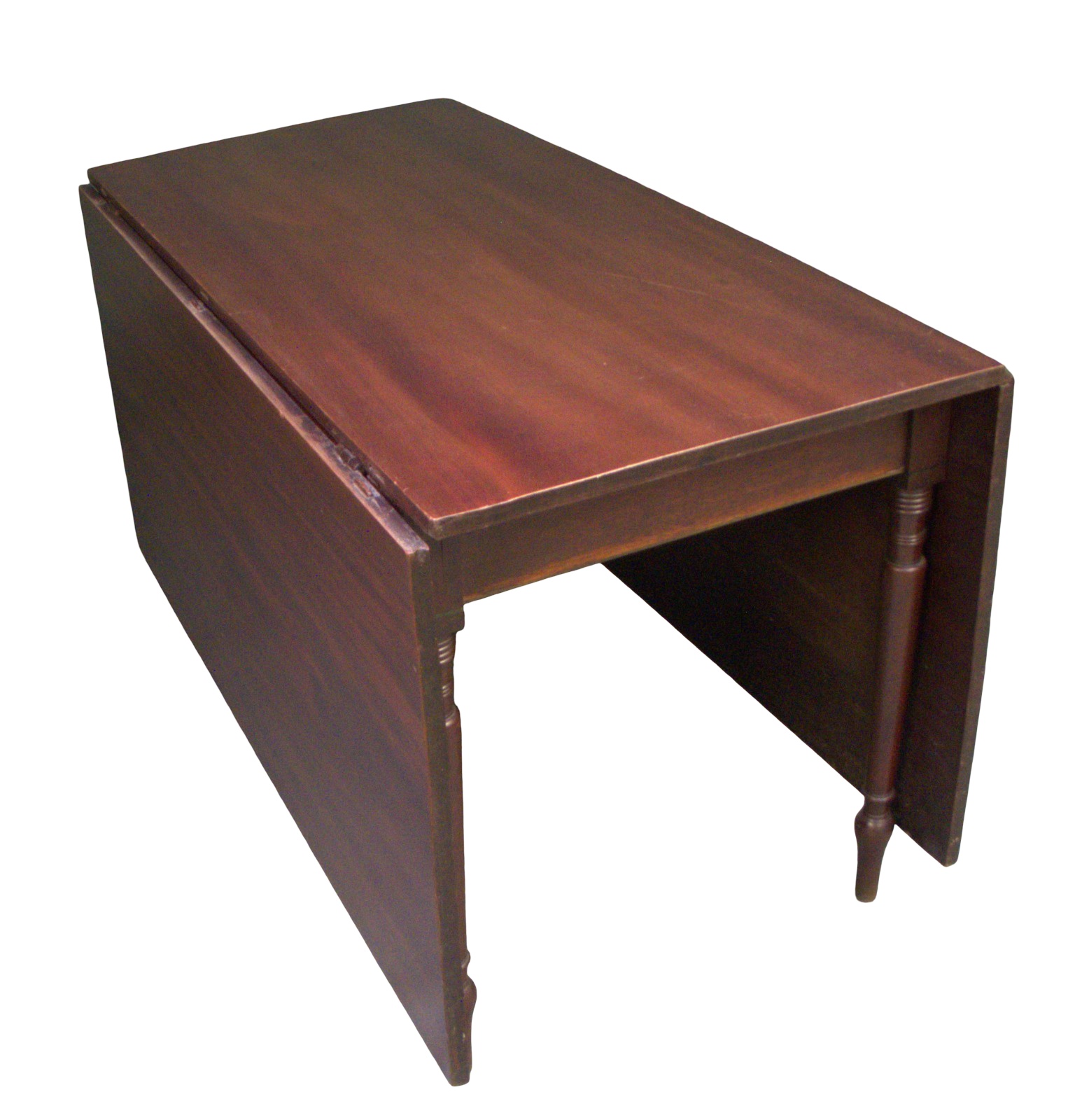 Fine 18th Century Georgian antique mahogany dining table to seat 8, possibly 10. This table, supported on beautifully shaped pencil legs with gate-leg action to support the hinged leaves. This is a most attractive table in solid mahogany. A desirable and useful piece which can be folded down when not in use.