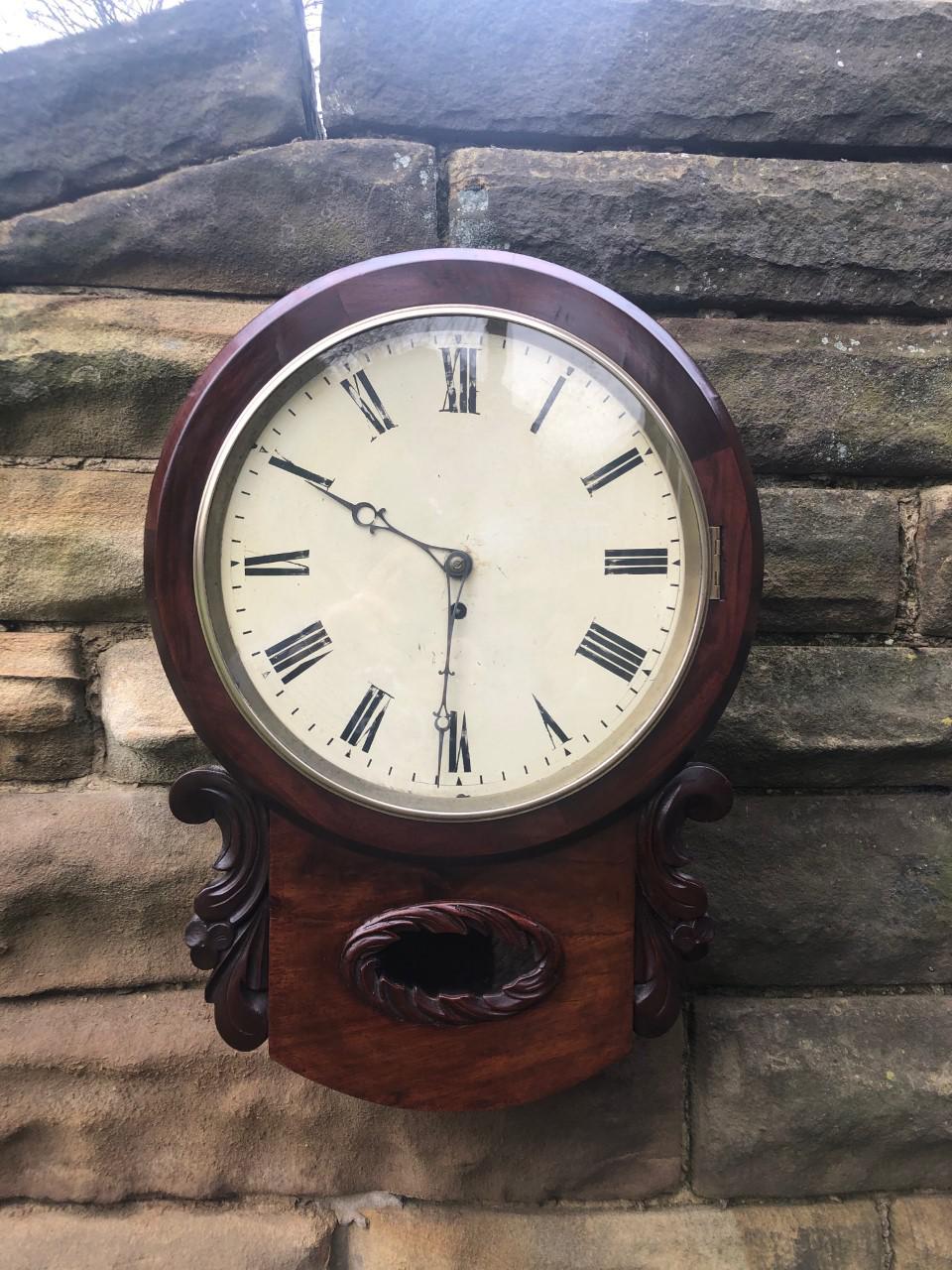 Antique Mahogany Drop Dial Fusee Wall Clock