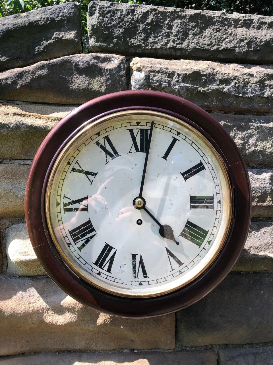 Antique Mahogany Fusee Station Wall Clock