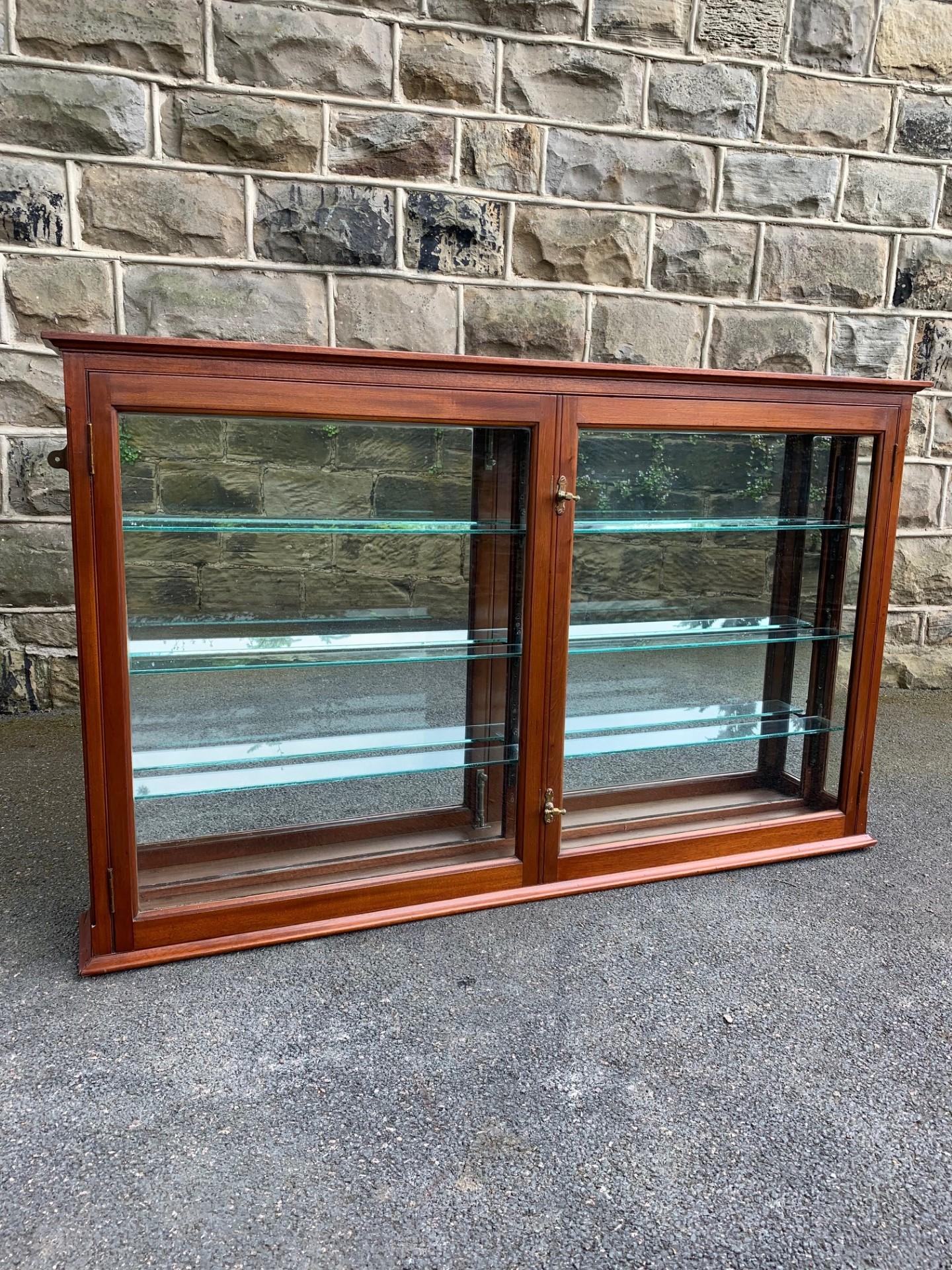 Antique Mahogany Glazed Shop Display Collectors Cabinet
