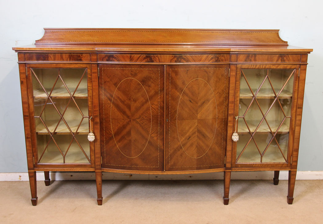 Antique Mahogany Inlaid Bow Fronted Sideboard / Display Cabinet