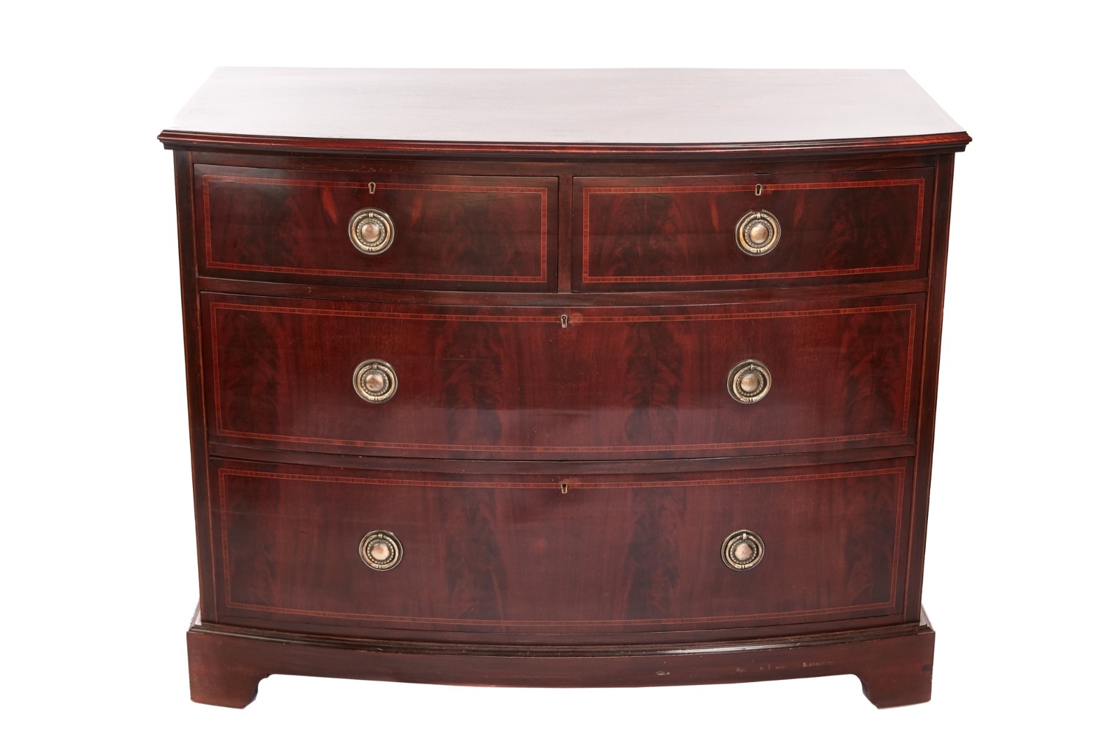 Antique Mahogany Inlaid Bowfront 4 Drawer Chest (1 of 1)
