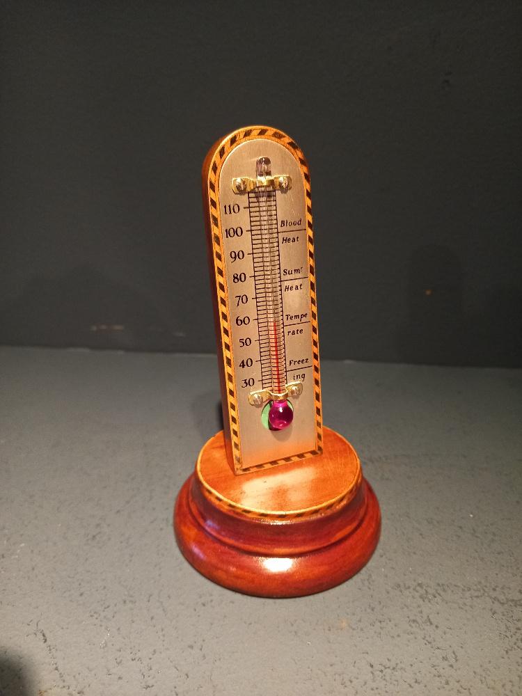 Antique Mahogany Inlaid Desk Top Thermometer