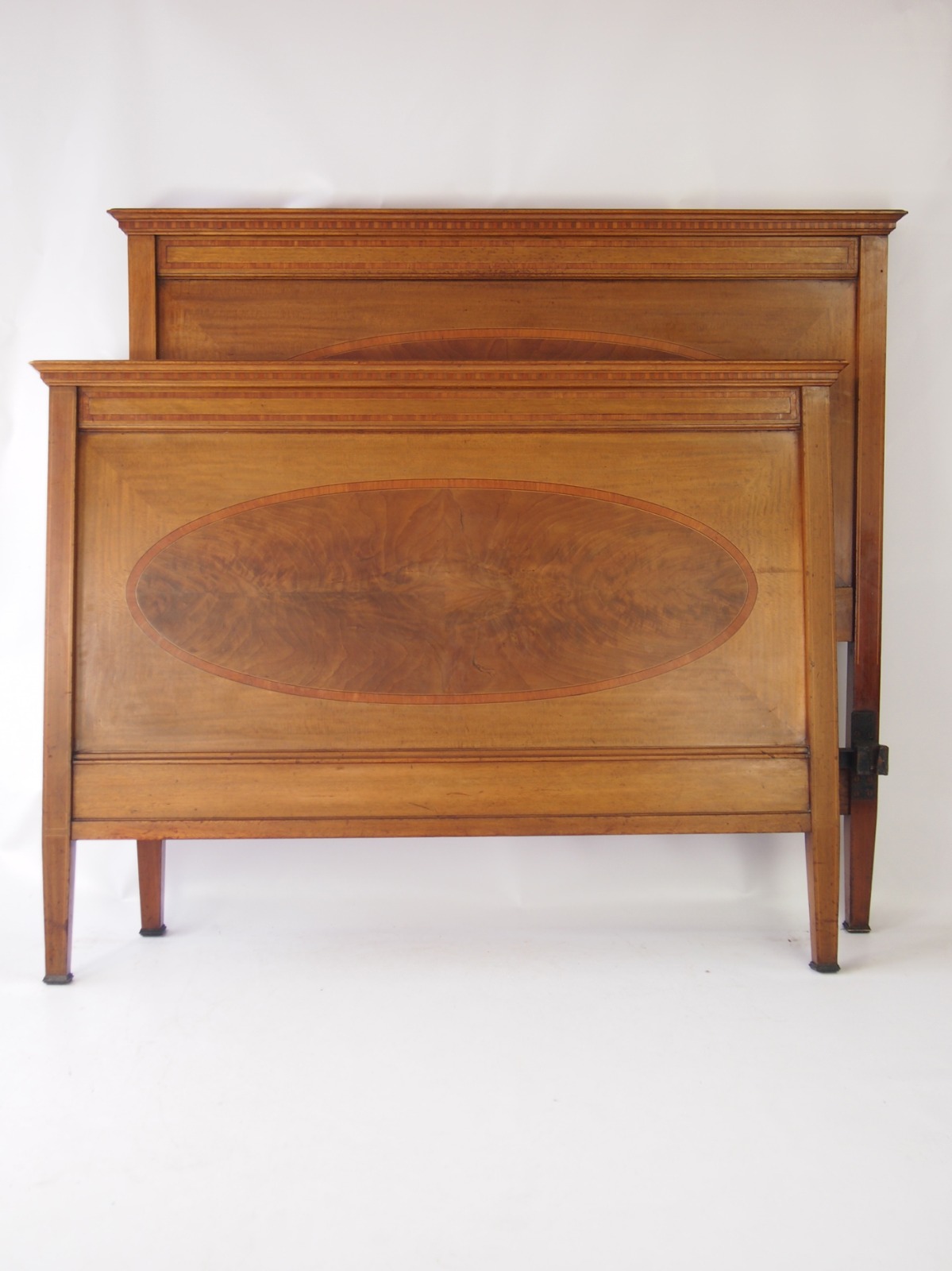Antique Mahogany & Inlaid Double Bed (1 of 1)