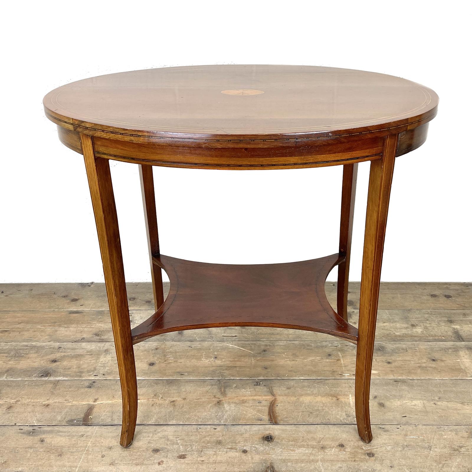Antique Mahogany Inlaid Oval Shaped Side Table (1 of 8)