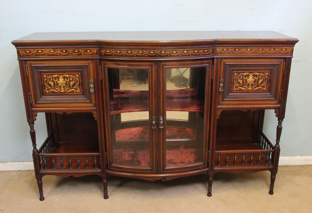 Antique Mahogany Inlaid Sideboard Display Cabinet