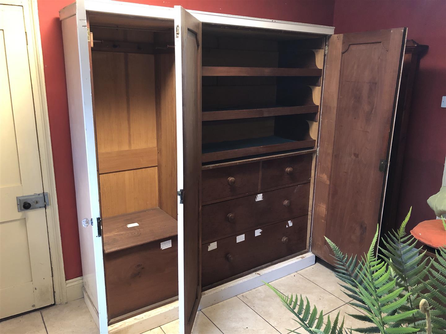 Antique Mahogany Large Triple Wardrobe Compactum Painted White