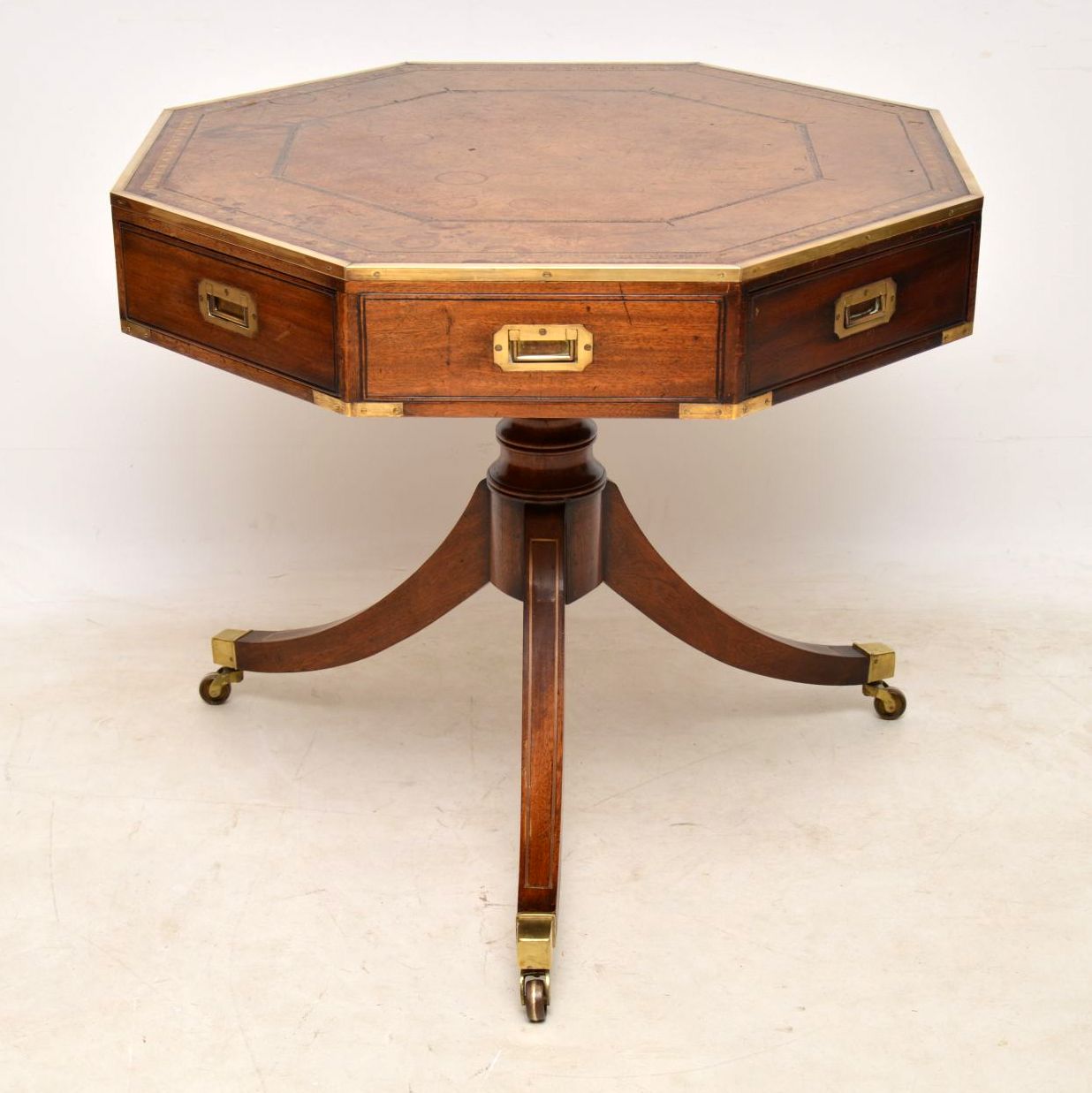 Antique Mahogany & Leather Campaign Drum Table (1 of 1)