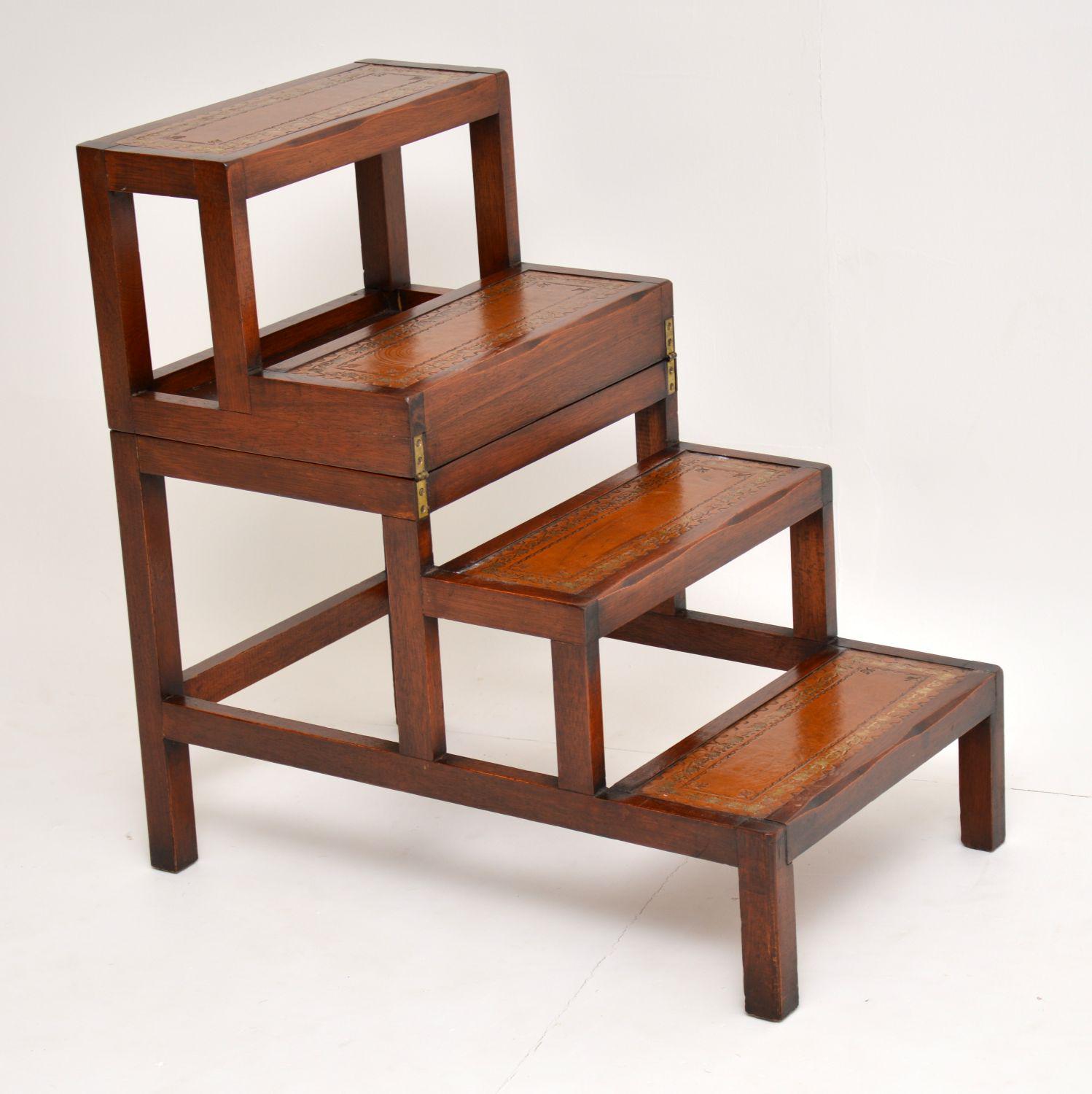 Antique Mahogany & Leather Folding Library Steps / Coffee Table (1 of 11)