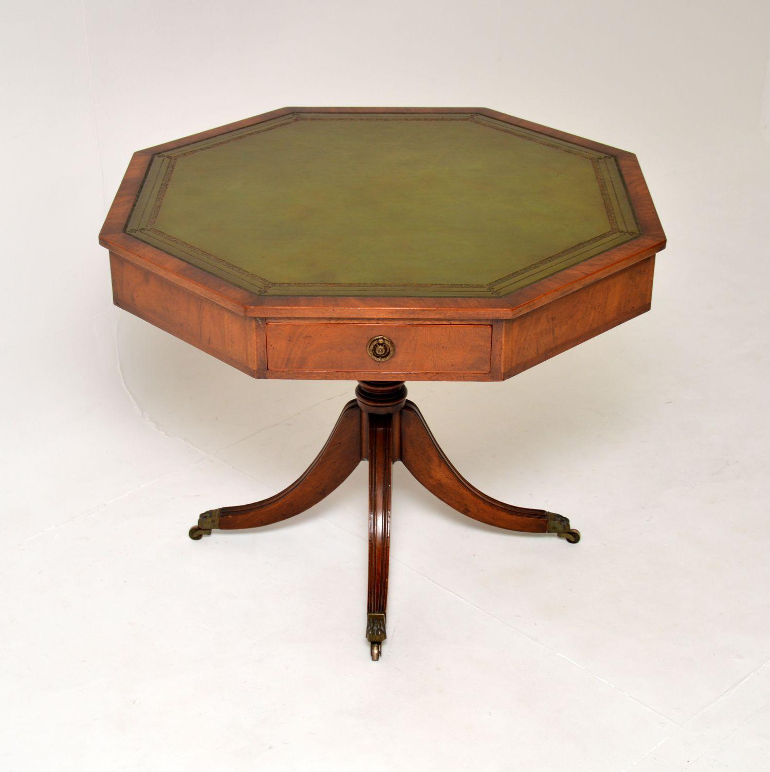 Antique Mahogany Leather Top Octagonal Drum Table (1 of 10)