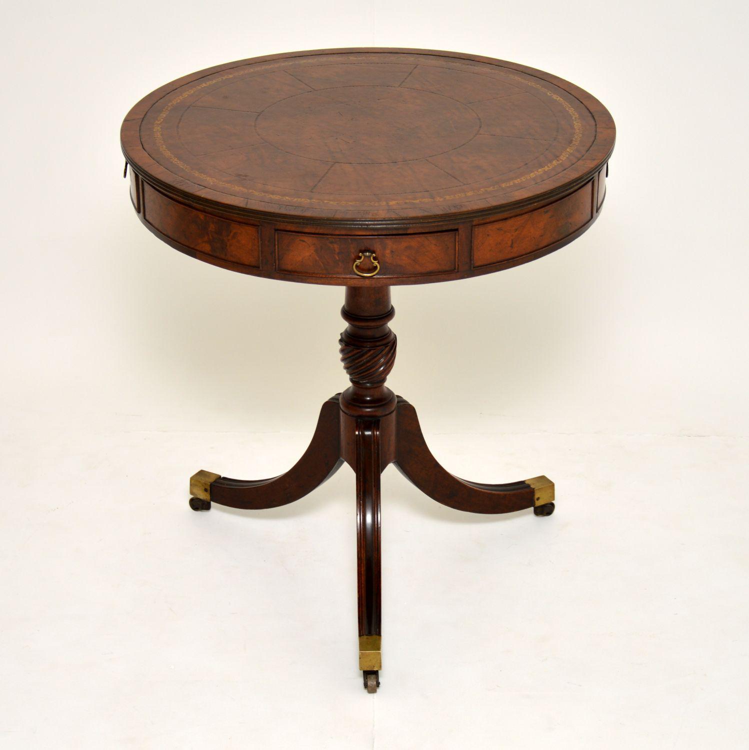 Antique Mahogany Leather Top Revolving Drum Table