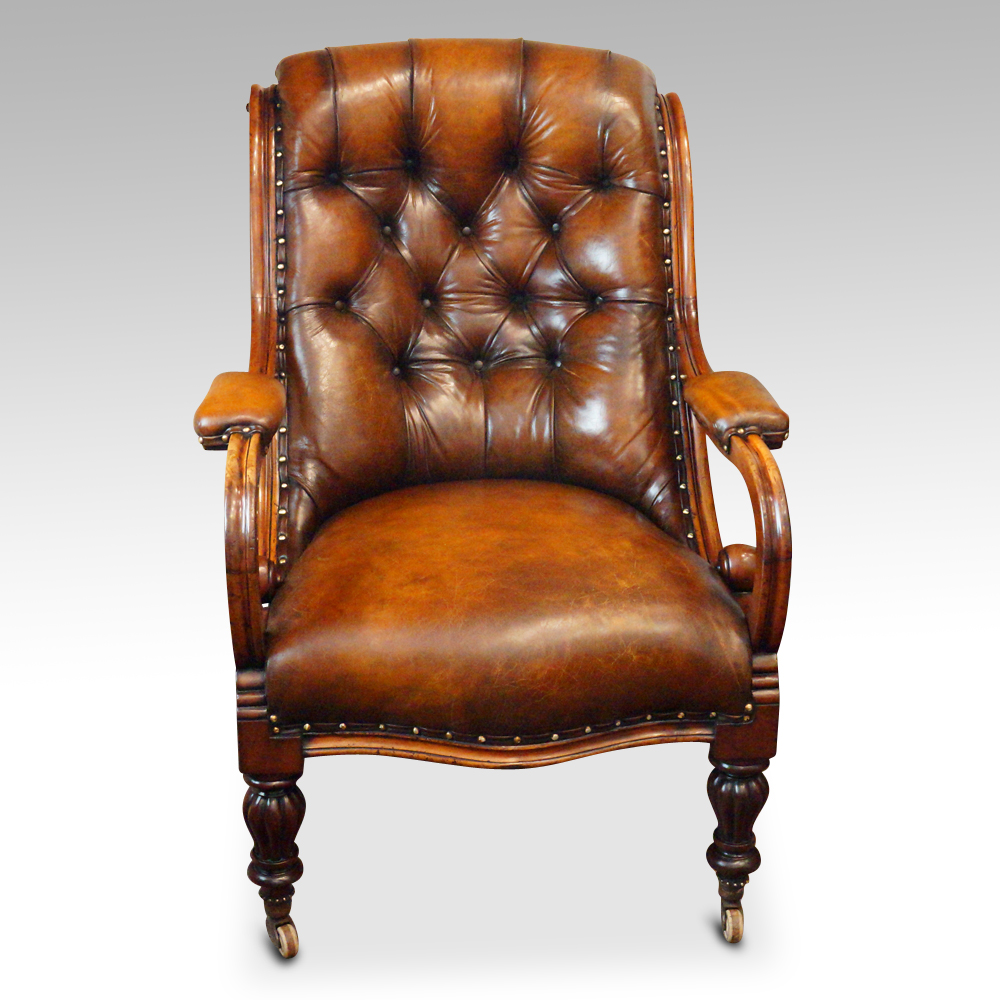 Antique Mahogany Leather Upholstered Easy Armchair (1 of 1)