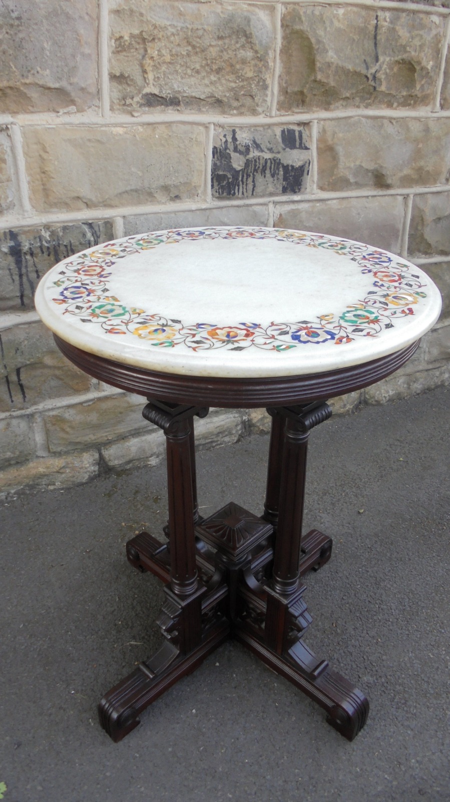 Antique Mahogany Marble Top Pietra Dure Table