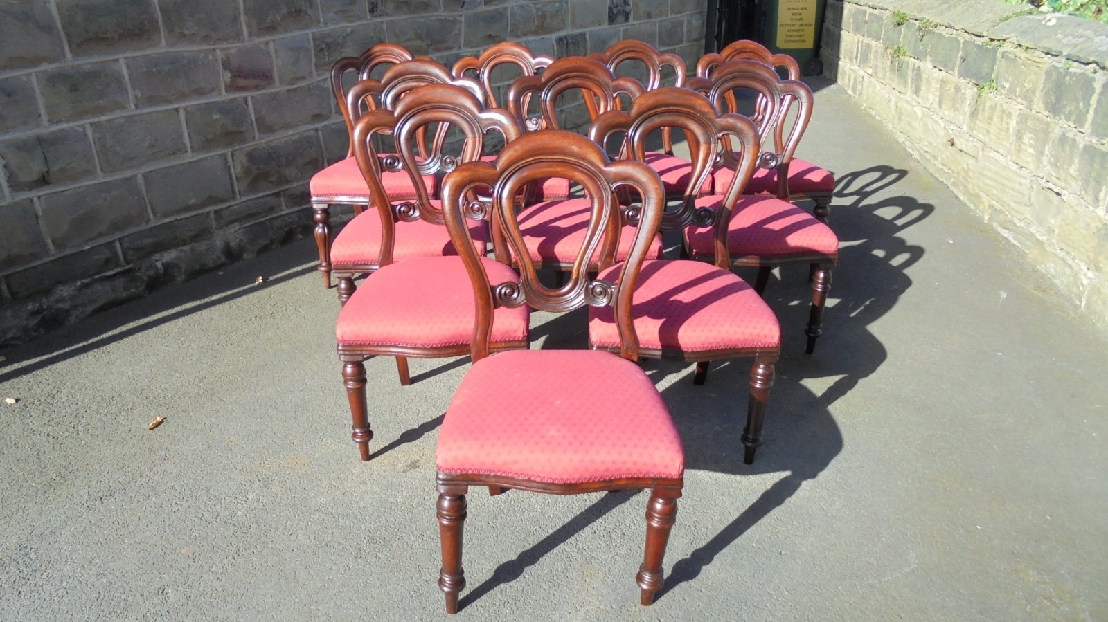 Antique Mahogany Matched Set 10 Balloon Back Dining Chairs